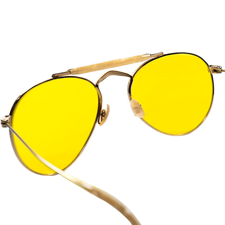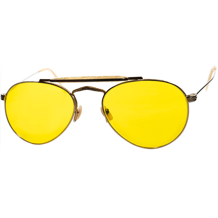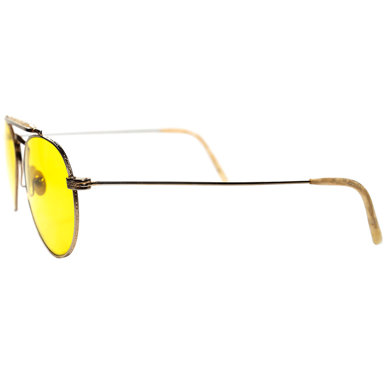 当時のアビエーターのデザインとしては非常に珍しい彫金があしらわれたGOLD METALのフレームボディや、通常のアビエーターではこれまで見たことのない、