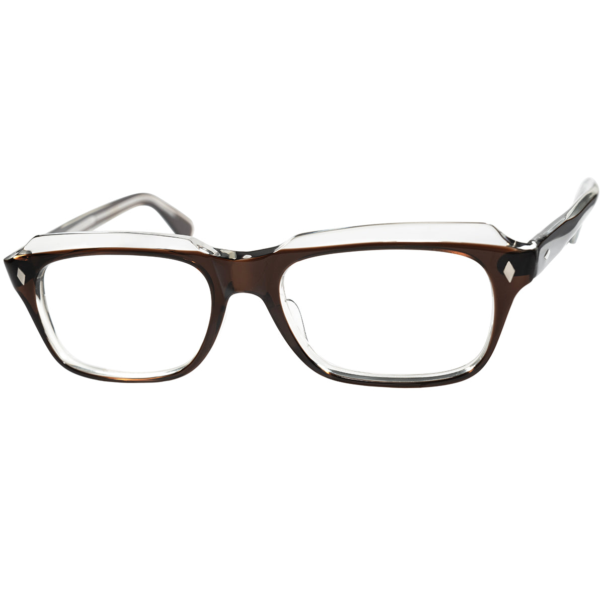 上級フレンチモダニズム体現1950sフランス製デッドストック FRAME FRANCE 傾斜CUTTINGミリタリーSTYLEダイヤ鋲 ウェリントン BROWN SMOKE 快適SIZE ビンテージ ヴィンテージ 眼鏡 メガネ 【b0434】