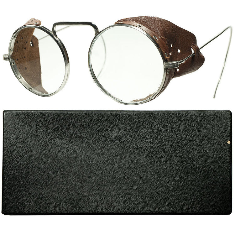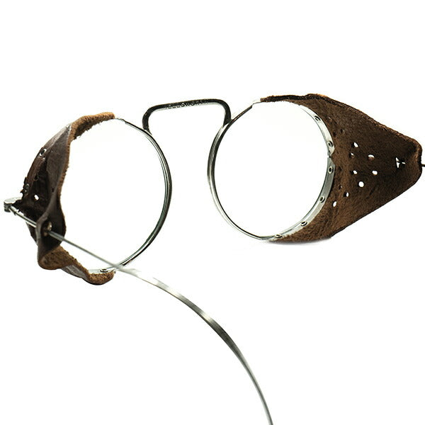深海級ULTRA DEEP 1920s 箱付 デッドストック DEADSTOCK USA製 AO AMERICAN OPTICAL アメリカンオプティカル別名義WELLSWORTH 肉厚レザーサイド ガードコの字型BRIDGE正円ROUND 丸眼鏡 丸メガネ ビンテージ ヴィンテージ 眼鏡 メガネ 【a6386】