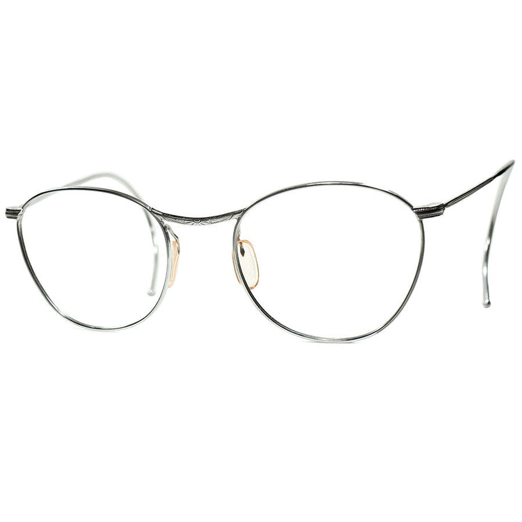 いぶし銀SUPER RAREシェイプ GOODSIZE個体 1940s-50s フランス製TAG付デッドストック SILVER METAL 彫金ブリッジ FOX型 PANTO パントゥ 丸眼鏡 ビンテージ ヴィンテージ 眼鏡 メガネ 【a7427】