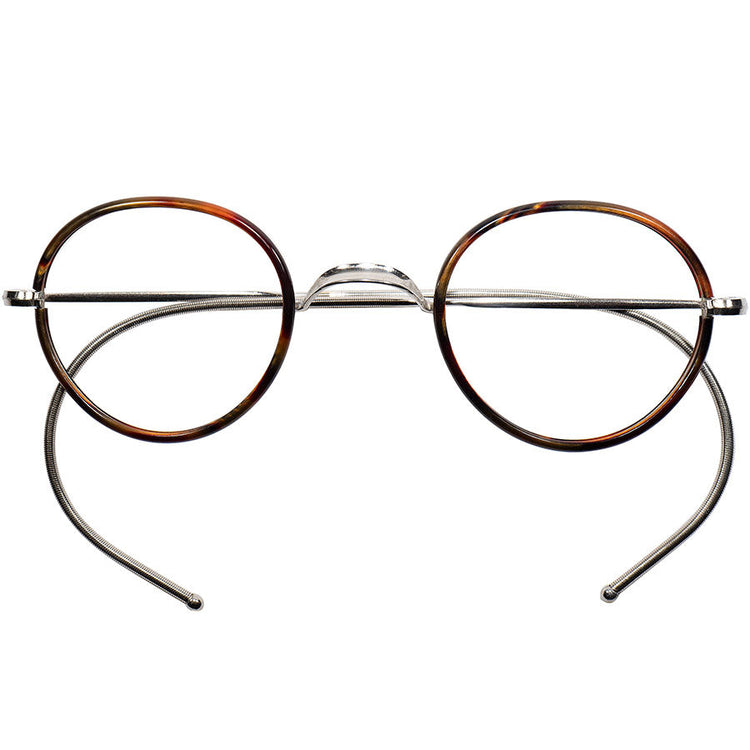 オールドな雰囲気が滲み出る古い時代の剥き出しのメタルフレーム独特の荒々しい質感と、当時のならではの質感と発色が美しいセルロイド生地の相性がなんとも絶妙で、