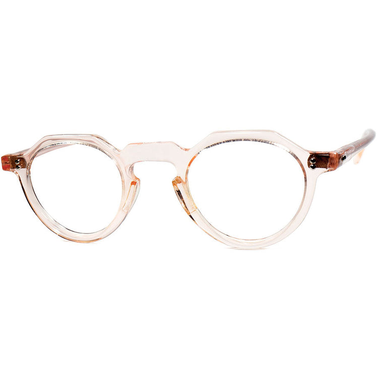何故かアジア人の骨格とやたらと相性の良いクラウンパントシェイプとの相乗効果により、最高峰の肌なじみを実現したヴィンテージのフレッシュトーンの眼鏡でもそうは見つからないような内容の一本となっておりますので、