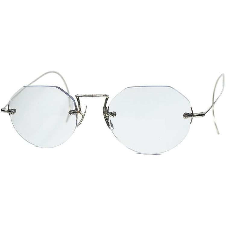 当時ならではの贅沢なマテリアル使い1920s USA製 老舗 SHURON 10K金無垢PADx ホワイトゴールド金張彫金2POINT クラウンパント型 45/20実寸 ビンテージ ヴィンテージ 眼鏡 メガネ 【a8040】