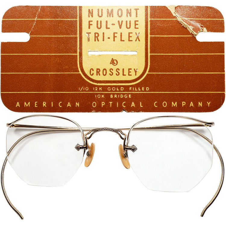 優美高妙1930s-40s 貴重デッドストック USA製 AO AMERICAN OPTICAL アメリカンオプティカル NUMONT FUL-VUE フルビュー 1/10 12KGF 金張 & 手彫彫金10K無垢BRIDGE size42/22 ビンテージ ヴィンテージ 眼鏡 メガネ【a8841】