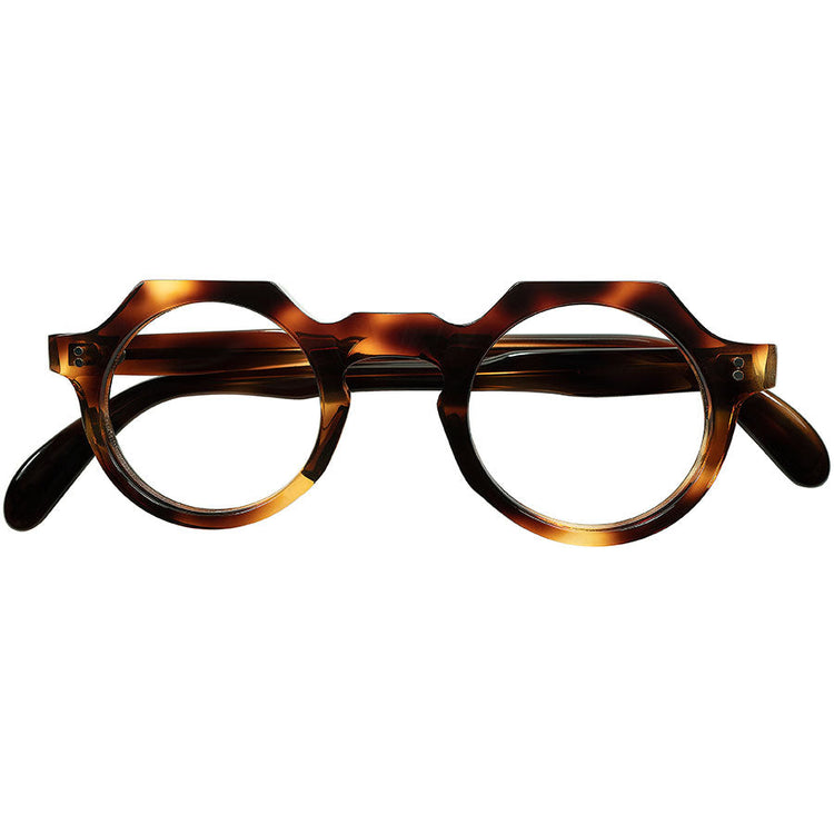 まん丸なレンズ枠を採用することでより丸眼鏡よりなシルエットで大きすぎず、小さすぎない絶妙なシルエットバランスで