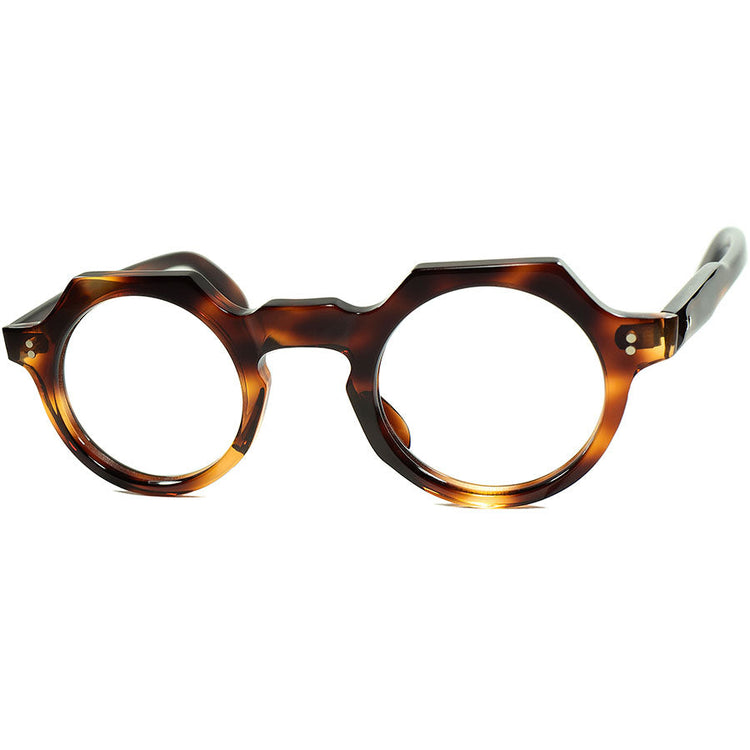 クラウンパントとラウンドの両者の良いところ取りなそのデザインは、今から6,70年前のものとは到底思えない程のアイウェアデザインとしての斬新な感覚を是非ご堪能いただけるはずです。
