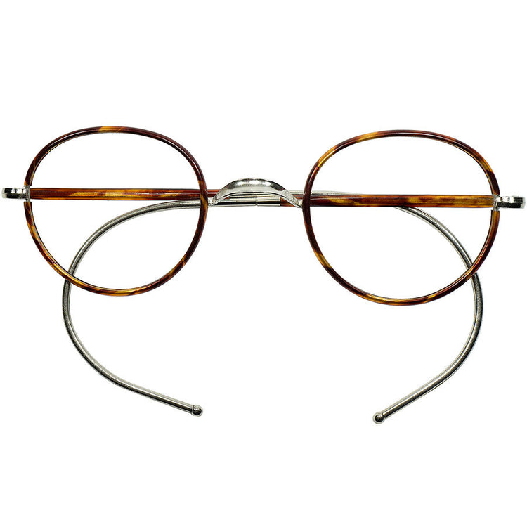 オールドな雰囲気が滲み出る古い時代の剥き出しのメタルフレーム独特の荒々しい質感と、当時のならではの質感と発色が美しいセルロイド生地の相性がなんとも絶妙で、