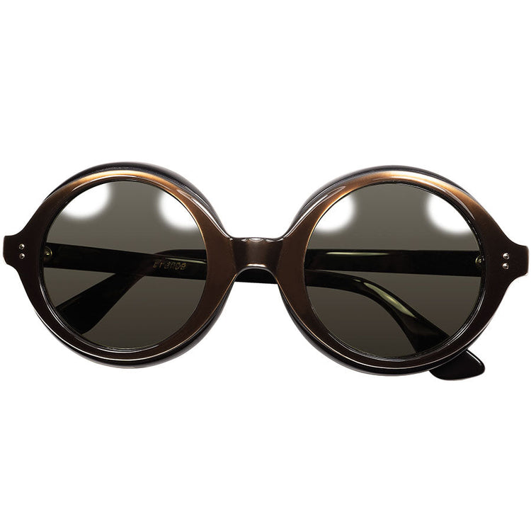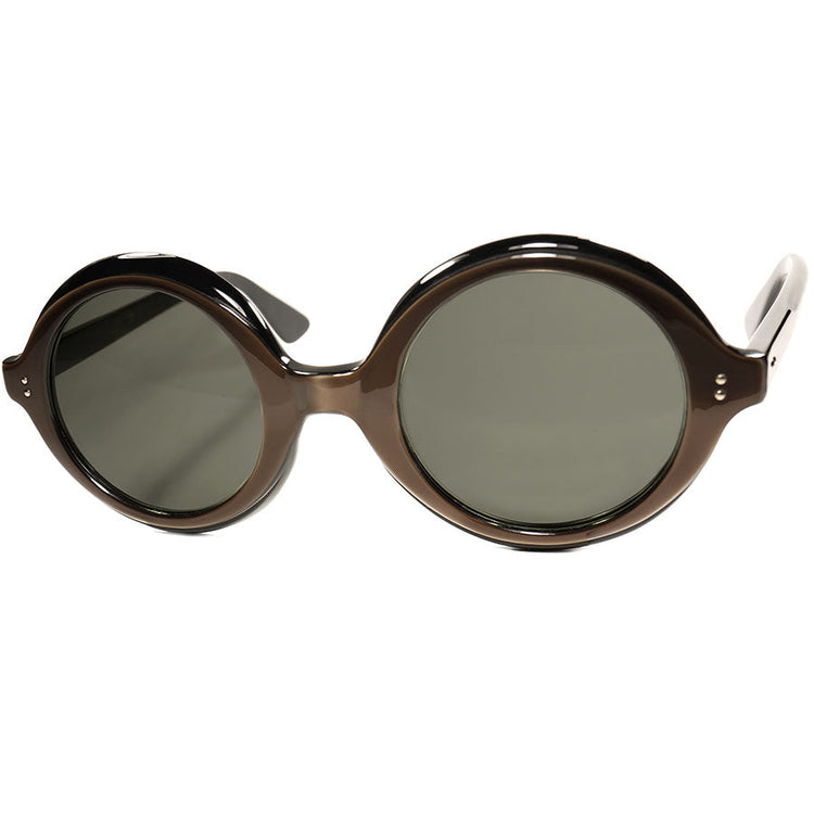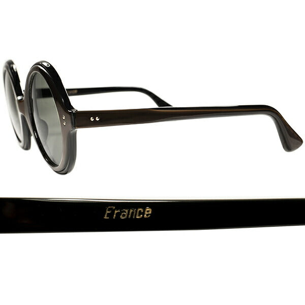French Mid Century なOLDモード感とシックな色使い1960sフランス製デッドストック FRAME FRANCE ラウンド サングラス 丸眼鏡 黒ベース BROWN SILK ビンテージ ヴィンテージ 眼鏡 メガネ 【a9081】