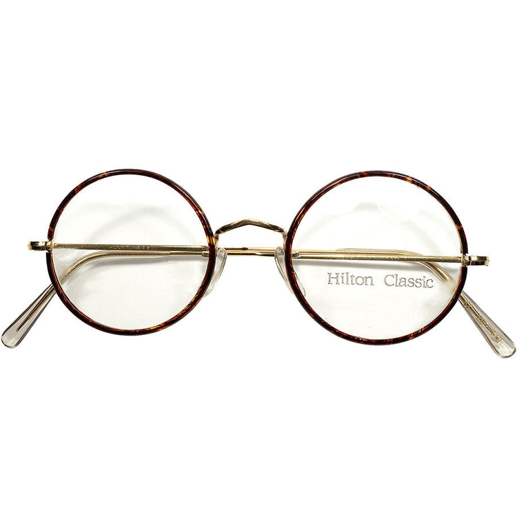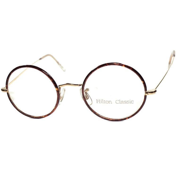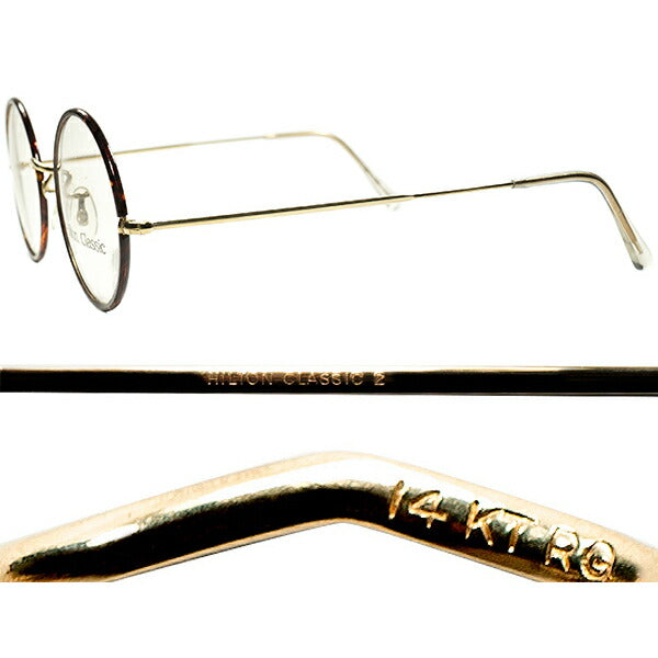 SUPER RARE仕様個体 1970sデッドストック ENGLAND製 HILTON CLASSIC ヒルトン クラシック セル巻 正円 ラウンド 丸眼鏡 14KT金張size47/20 超GOODSIZE ビンテージ ヴィンテージ 眼鏡 メガネ 【a9091】