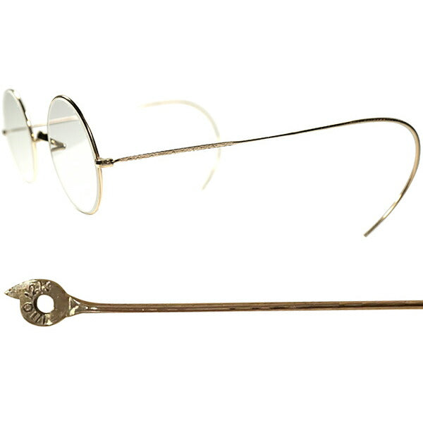 UNUSALコンボ 当時特注品? 無彫金FRONTx 彫金TEMPLE 1920-30sMADE IN USA 1/10 12KGF金張 一山式 正円ROUND 40/23 丸眼鏡 FLATガラスLENS ビンテージ ヴィンテージ 眼鏡 メガネ【a9119】