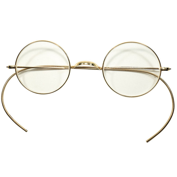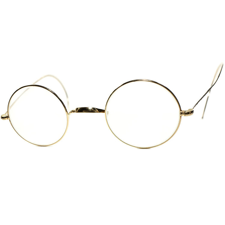 世界恐慌頃の1920年代頃のアメリカから、当時のアンティークの丸眼鏡では非常に珍しいフロント無彫金金張、テンプル彫金金張というUNUSUALなコンビネーションのRARE仕様が当時の特注品と推測される一山金張ラウンドがミントコンディションで入荷しました。