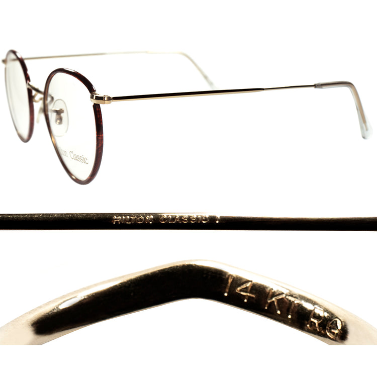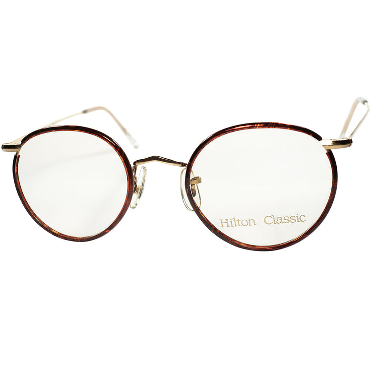 最定番CLASSICカラー 超GOODSIZE個体 1970s デッドストック ENGLAND製 HILTON CLASSIC ヒルトン クラシック セル巻 PANTO ラウンド 14KT金張size47/20 ビンテージ ヴィンテージ 眼鏡 メガネ 【a9518】