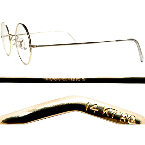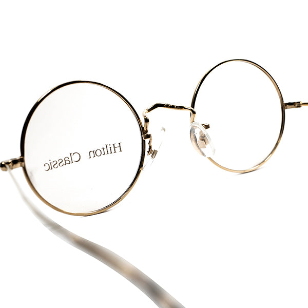 EARLY STYLE絶妙コンパクトシルエット1970sデッドストック ENGLAND製 HILTON CLASSIC ヒルトン クラシック ROUND 正円ラウンド 丸眼鏡 14KT金張42/20 ビンテージ ヴィンテージ 眼鏡 メガネ 【a9769】